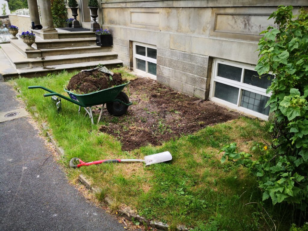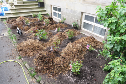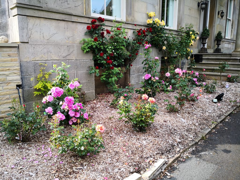 Under utilised beds at the front aspect of a formal Grade 1 Listed property. Old grass and rubble were removed and recycled elsewhere and several tons of compost added to the beds with a slow release fertiliser incorporated for longevity. A range of floribunda and bush roses planted in pinks and peaches and as the site is quite windy a woodchip mulch added to retain moisture.